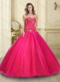 Hot Sale Sweetheart Coral Red Tulle 15 Quinceanera Dress with Beading