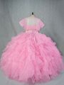 Hot Sale Sweetheart Sleeveless Lace Up Quince Ball Gowns Baby Pink Organza