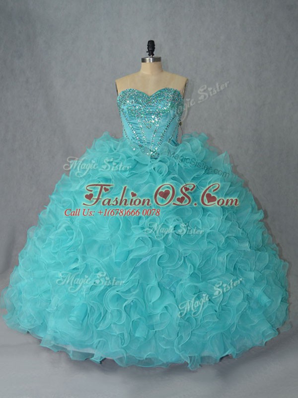 Hot Sale Sweetheart Sleeveless Organza Quinceanera Gown Beading and Ruffles Lace Up