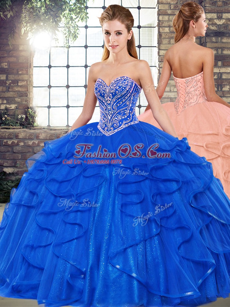 Hot Sale Tulle Sleeveless Floor Length Sweet 16 Dresses and Beading and Ruffles