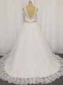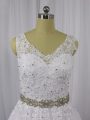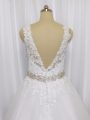 Hot Sale Tulle Sleeveless Wedding Dresses Brush Train and Beading and Lace