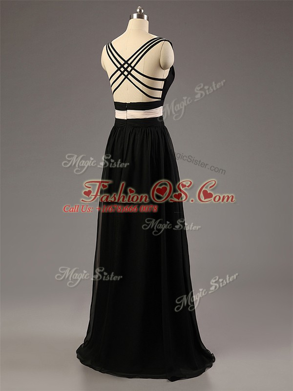 Home >  Special Occasion Dresses >  Discount Dama Dresses > Hot Sale White And Black Straps Criss Cross Ruching Dama Dress Sleeveless