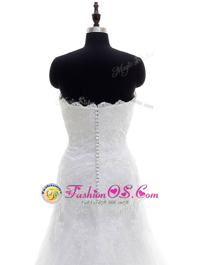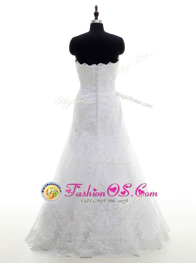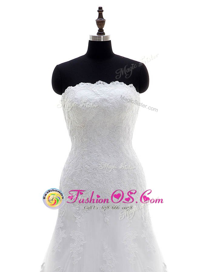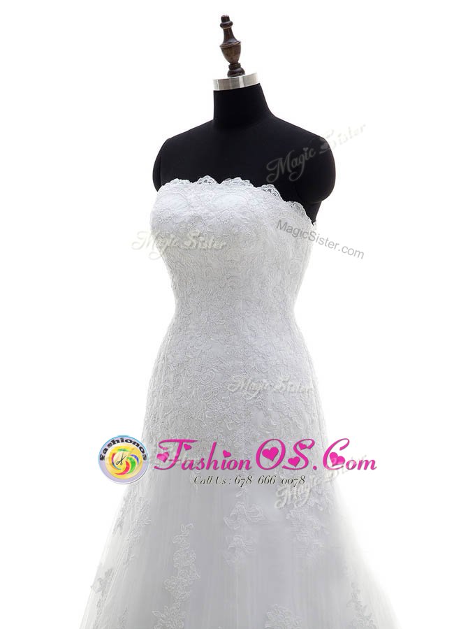Hot Sale White Sleeveless Lace Floor Length Wedding Gown