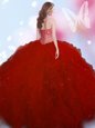Hot Sale Wine Red Ball Gowns Beading Quinceanera Gowns Lace Up Tulle Sleeveless Floor Length