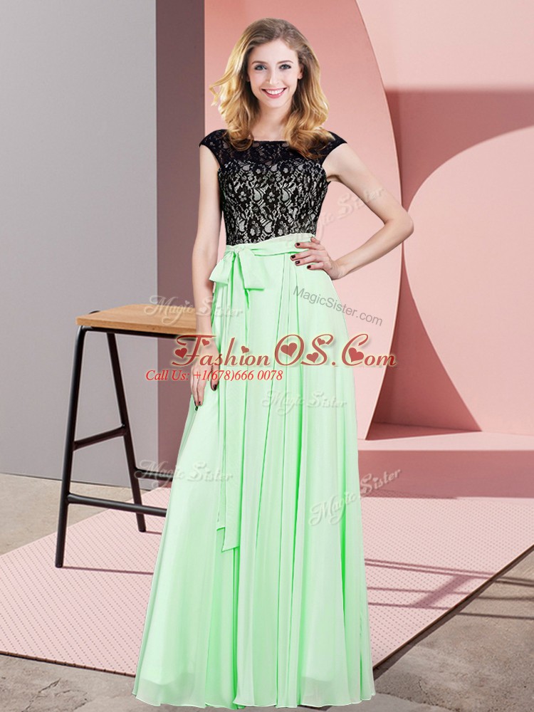 Hot Selling Apple Green Sleeveless Lace and Belt Floor Length Prom Party Dress
