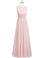 Hot Selling Baby Pink Sleeveless Ruching Floor Length Prom Dress