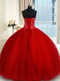Hot Selling Ball Gowns Sweet 16 Dresses Eggplant Purple Sweetheart Tulle Sleeveless Floor Length Lace Up