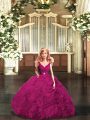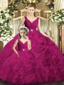 Hot Selling Ball Gowns Sweet 16 Dresses Fuchsia V-neck Fabric With Rolling Flowers Sleeveless Floor Length Backless