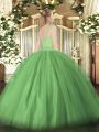 Hot Selling Ball Gowns Sweet 16 Dresses Teal Straps Tulle Sleeveless Floor Length Zipper