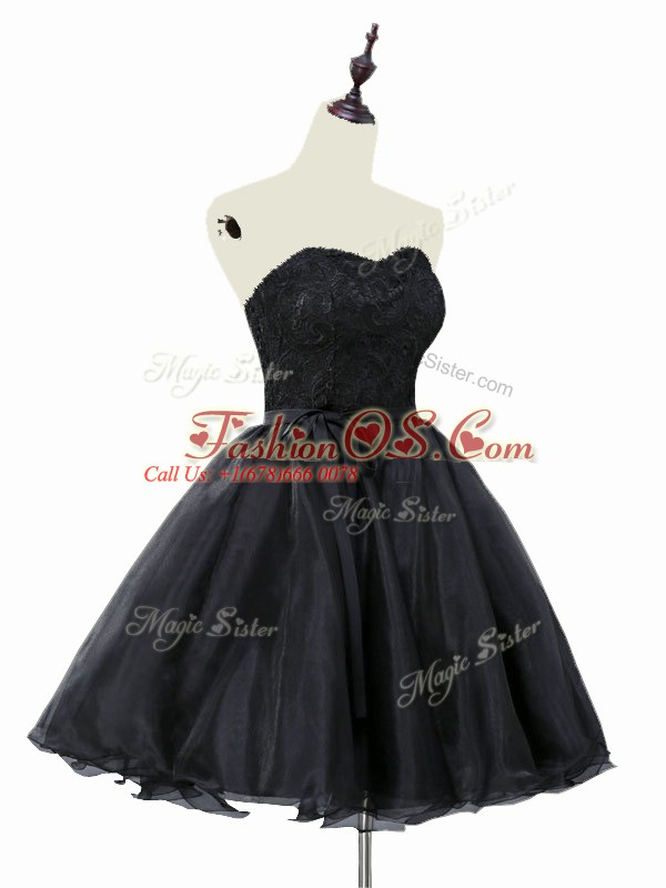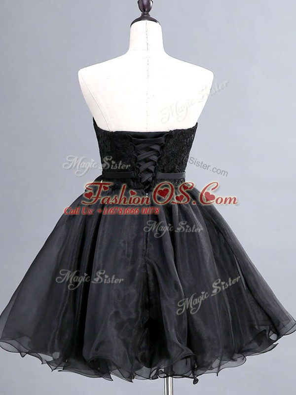 Hot Selling Black A-line Sweetheart Sleeveless Organza Mini Length Lace Up Lace and Sashes ribbons Prom Dress