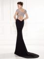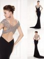 Hot Selling Black Chiffon Backless Evening Dresses Sleeveless Brush Train Beading