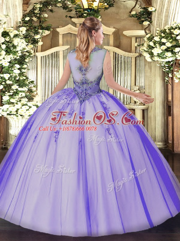 Hot Selling Floor Length Pink Quinceanera Gowns Scoop Sleeveless Zipper