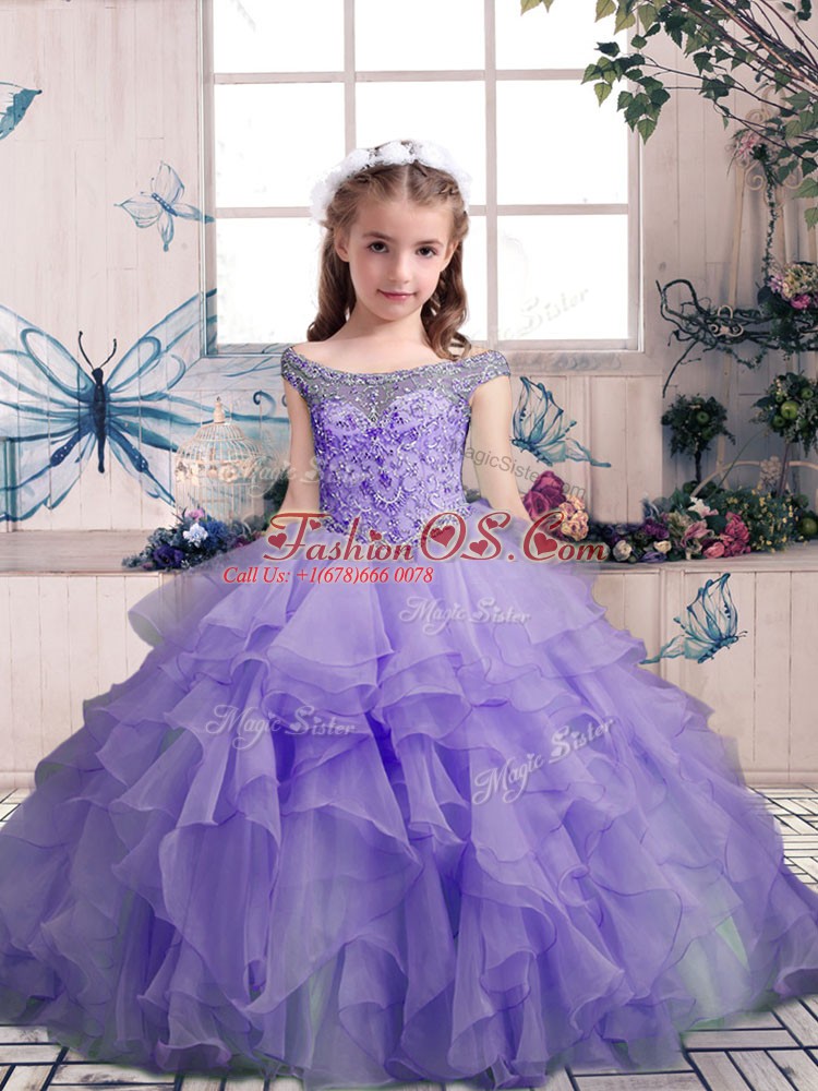 Home >  Special Occasion Dresses >  Beautiful Kids Pageant Dresses > Hot Selling Lavender Sleeveless Beading and Ruffles Floor Length Pageant Gowns