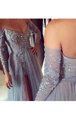 Hot Selling Off the Shoulder Grey Long Sleeves Organza Sweep Train Zipper Prom Dress for Prom and Party