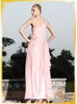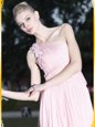 Home >  Prom Dresses >  Sexy Prom Dresses > Hot Selling One Shoulder Floor Length Baby Pink Prom Dress Chiffon Sleeveless Ruching and Hand Made Flower