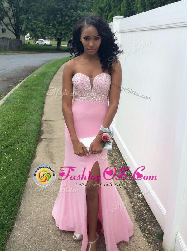 Hot Selling Rose Pink Backless Beading Sleeveless Floor Length
