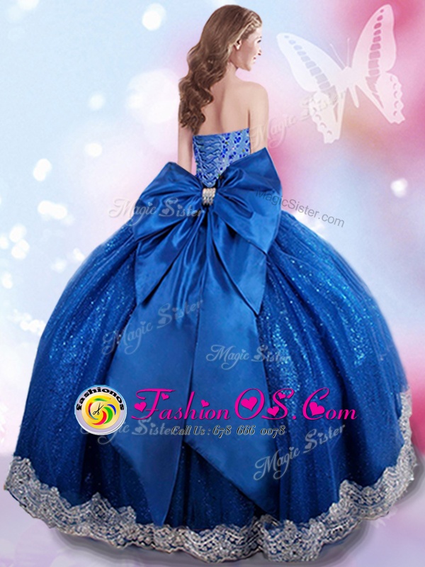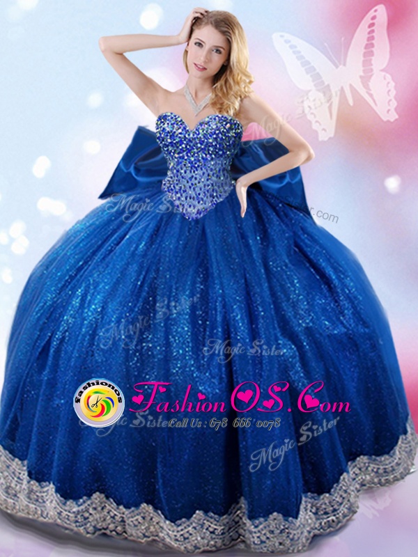 Hot Selling Royal Blue Quinceanera Dress Military Ball and Sweet 16 and Quinceanera and For with Beading and Lace and Bowknot Sweetheart Sleeveless Lace Up