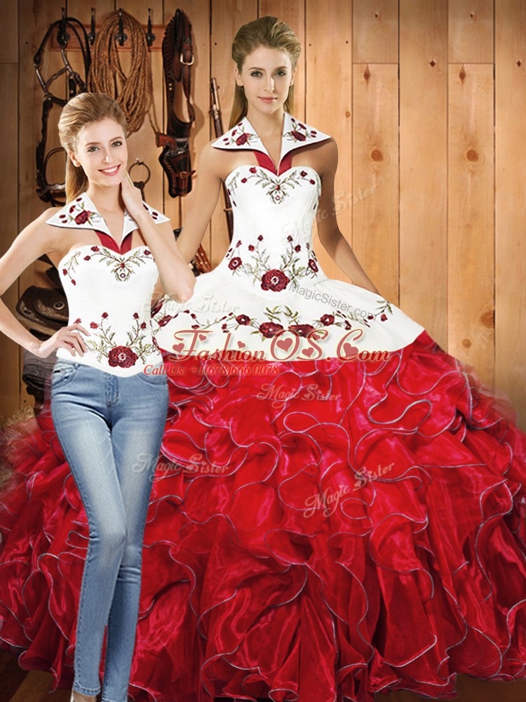 Hot Selling Sleeveless Lace Up Floor Length Embroidery and Ruffles 15 Quinceanera Dress