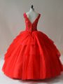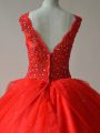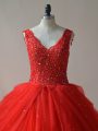 Hot Selling Sleeveless Tulle Floor Length Zipper 15 Quinceanera Dress in Red with Beading