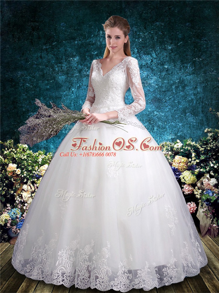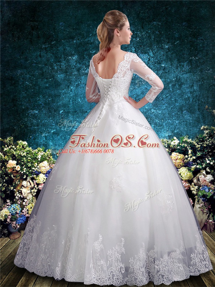 Hot Selling Tulle 3 4 Length Sleeve Floor Length Wedding Dress and Lace