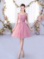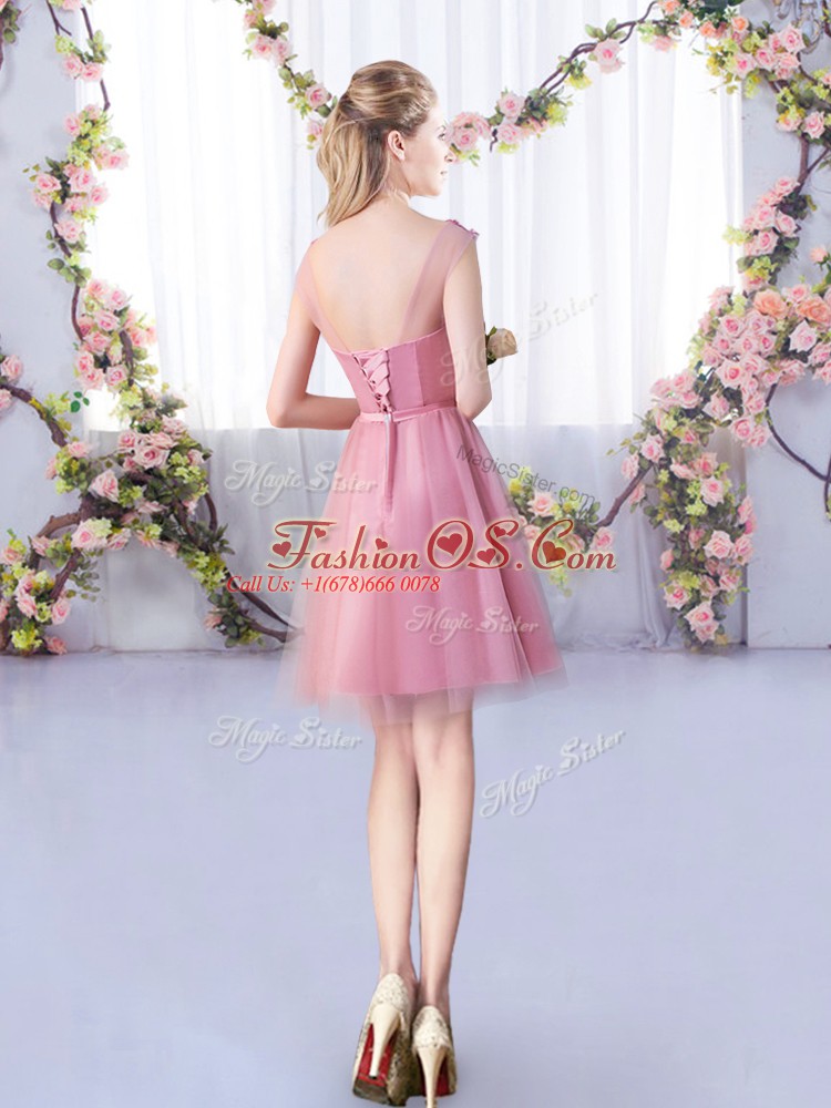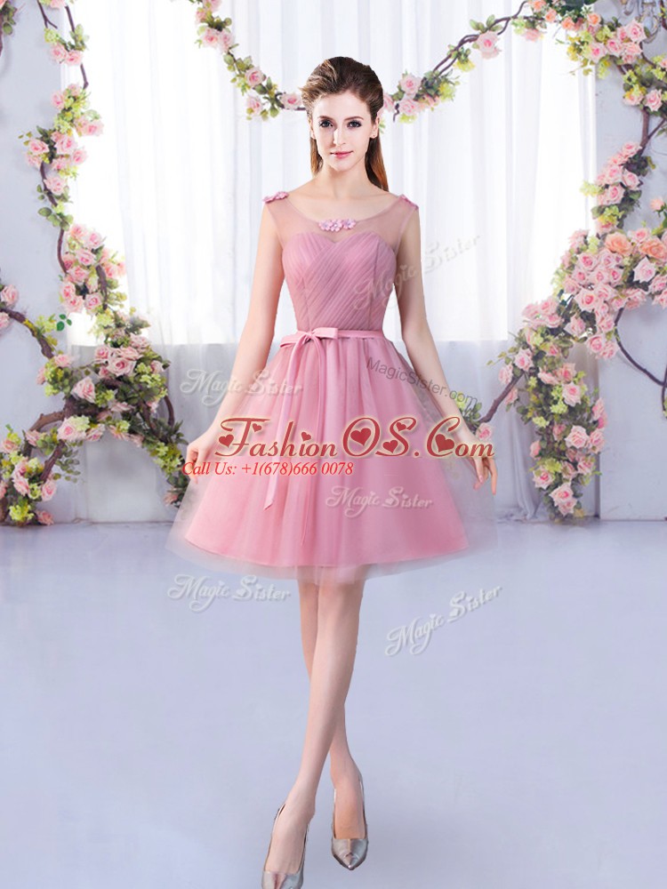 Hot Selling Tulle Sleeveless Mini Length Dama Dress and Appliques and Belt
