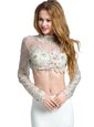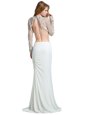 Home >  Prom Dresses >  Prom Dresses On Sale > Hot Selling White High-neck Neckline Beading and Lace and Appliques Prom Gown Long Sleeves Backless