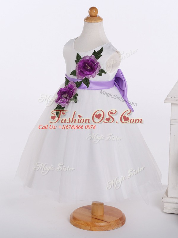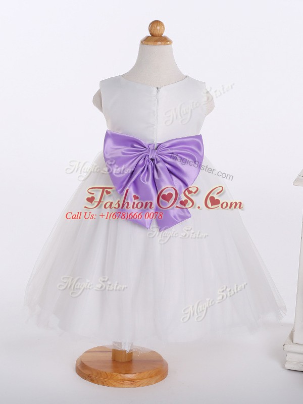Hot Selling White Zipper Pageant Gowns For Girls Bowknot and Hand Made Flower Sleeveless Knee Length