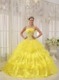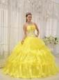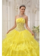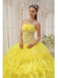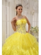 Home >  Quinceanera Dresses >  Popular Quinceanera Dresses > Hot Yellow Quinceanera Dress Strapless Taffeta and Organza Beading Ball Gown
