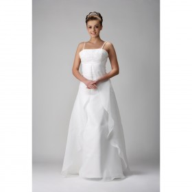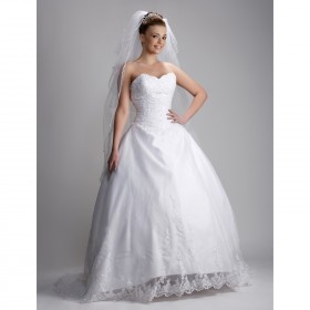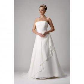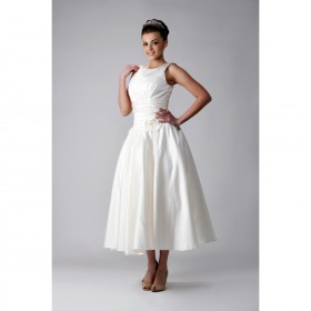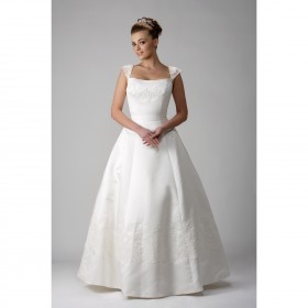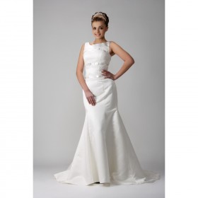 2.Ball Gown or “Pick Up” The most traditional of all dress silhouettes, the ball gown adds curves by accentuating the waist and flowing gracefully into a full skirt. The skirt is great at hiding full hips and creating a gorgeous hourglass figure. Is This Style for You? A perfect choice for formal or “fairy-tale” inspired events, the ball gown style makes a wonderfully classic wedding dress. Looks great on most body types. |