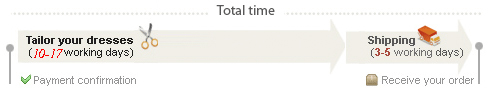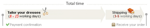 Total Shipping Time is based on the time it will take to tailor your dresses + the time taken for the finished dress to be shipped to you.