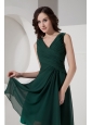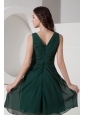 Hunter green A-Line / Princess V-neck Knee-length Chiffon Ruched Prom Dress
