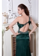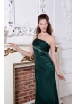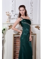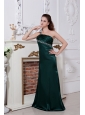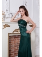 Hunter Green One Shoulder Prom Dress Floor-length Satin Ruch and Beading