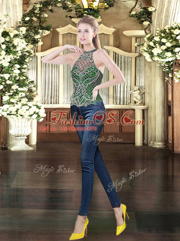 Ideal Beading Sweet 16 Dresses Dark Green Lace Up Sleeveless Floor Length