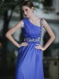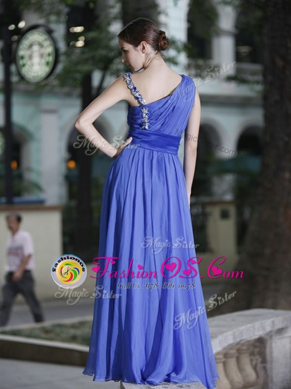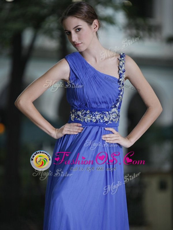 Home >  Prom Dresses >  Perfect Prom Dresses > Ideal Blue Chiffon Side Zipper One Shoulder Sleeveless Floor Length Hand Made Flower