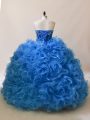 Ideal Blue Fabric With Rolling Flowers Lace Up Sweetheart Sleeveless Floor Length Quinceanera Dresses Ruffles and Sequins