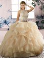 Ideal Champagne Scoop Neckline Ruffles Quinceanera Gown Sleeveless Lace Up