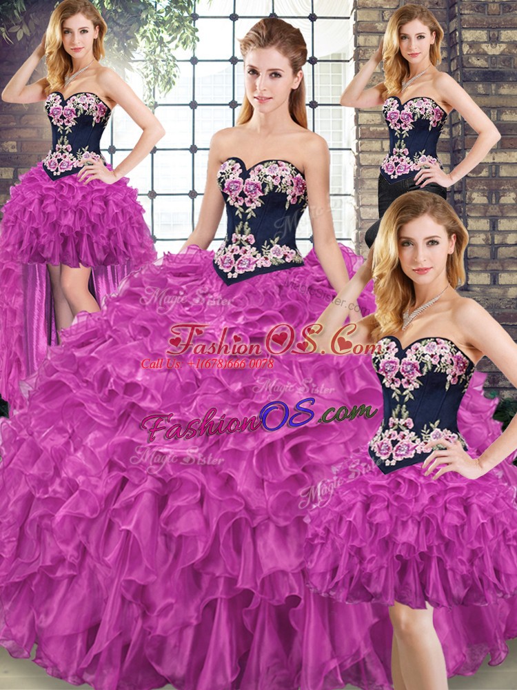 Home >  Quinceanera Dresses >  Removable Skirt Quinceanera Dresses > Ideal Embroidery and Ruffles Sweet 16 Dress Fuchsia Lace Up Sleeveless Sweep Train