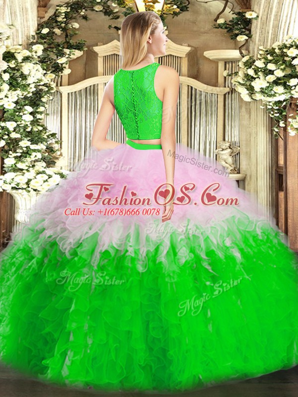Ideal Floor Length Two Pieces Sleeveless Multi-color Quince Ball Gowns Zipper