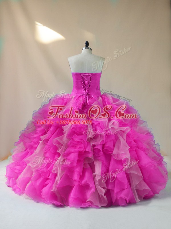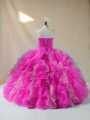Ideal Fuchsia Sweetheart Lace Up Beading and Ruffles Quinceanera Gowns Sleeveless