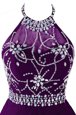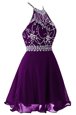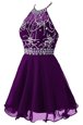 Ideal Halter Top Mini Length Purple Prom Dress Organza Sleeveless Beading