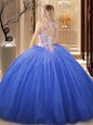 Ideal High-neck Sleeveless Lace Up Sweet 16 Dresses Burgundy Tulle