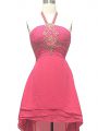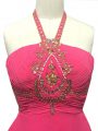 Ideal Hot Pink Empire Beading Cocktail Dresses Backless Chiffon Sleeveless High Low