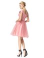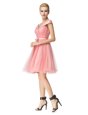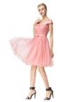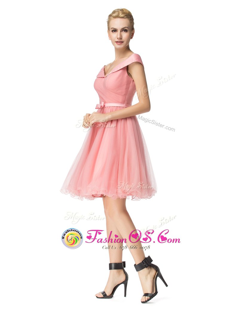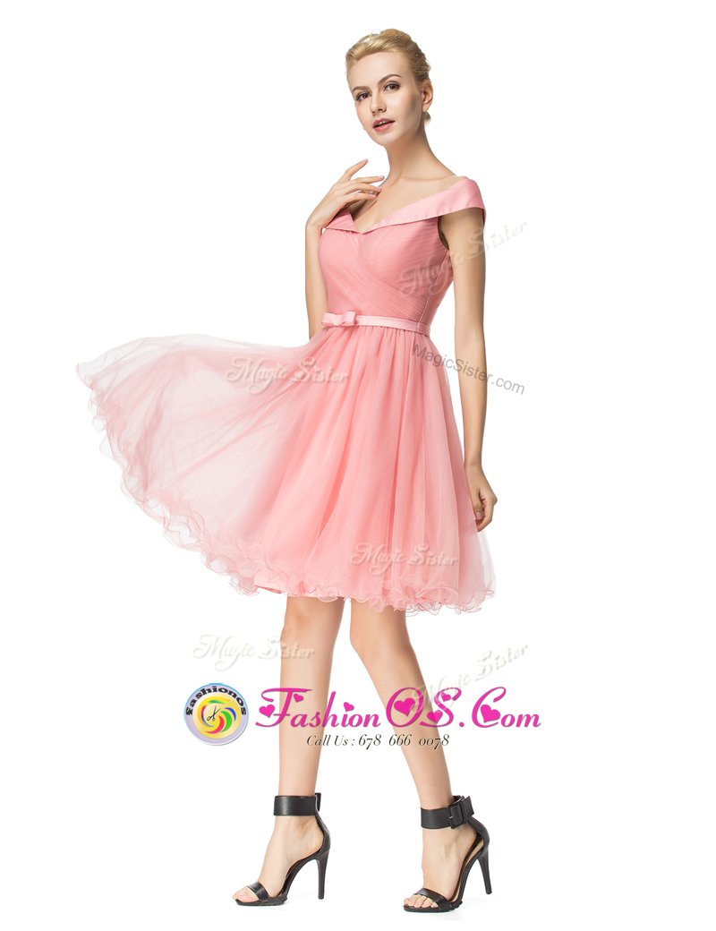 Ideal Knee Length Pink Prom Evening Gown Off The Shoulder Cap Sleeves Zipper