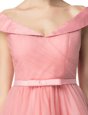 Home >  Prom Dresses >  Perfect Prom Dresses > Ideal Knee Length Pink Prom Evening Gown Off The Shoulder Cap Sleeves Zipper