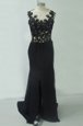 Ideal Mermaid Scoop Black Chiffon Zipper Celebrity Inspired Dress Sleeveless Floor Length Lace