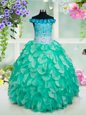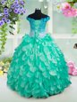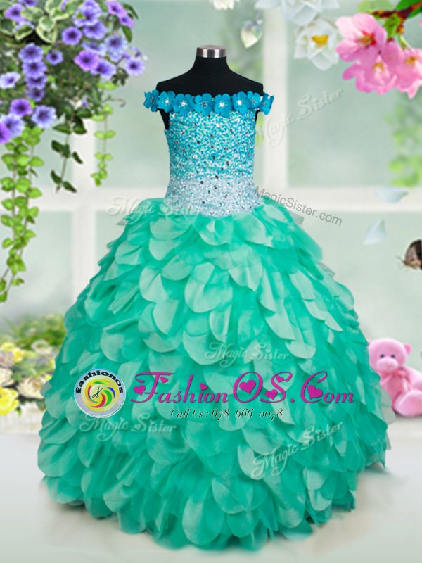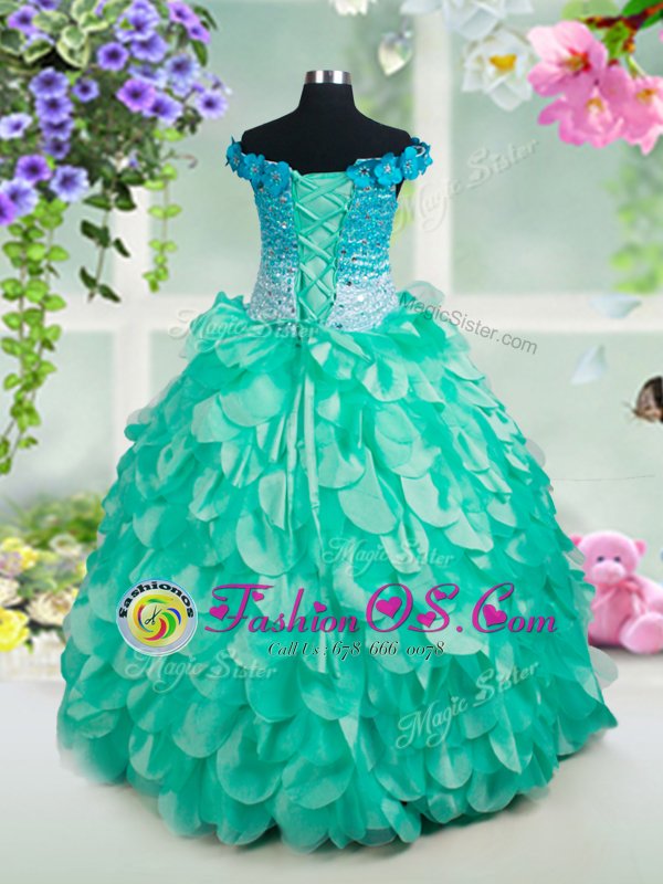 Ideal Off the Shoulder Turquoise Sleeveless Organza Lace Up Toddler Flower Girl Dress for Quinceanera and Wedding Party