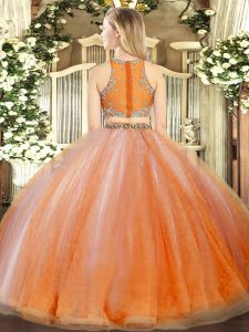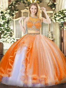 Home >  Quinceanera Dresses >  15 Quinceanera Dresses > Ideal Orange Red Scoop Neckline Beading and Ruffles Quinceanera Gown Sleeveless Zipper