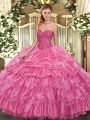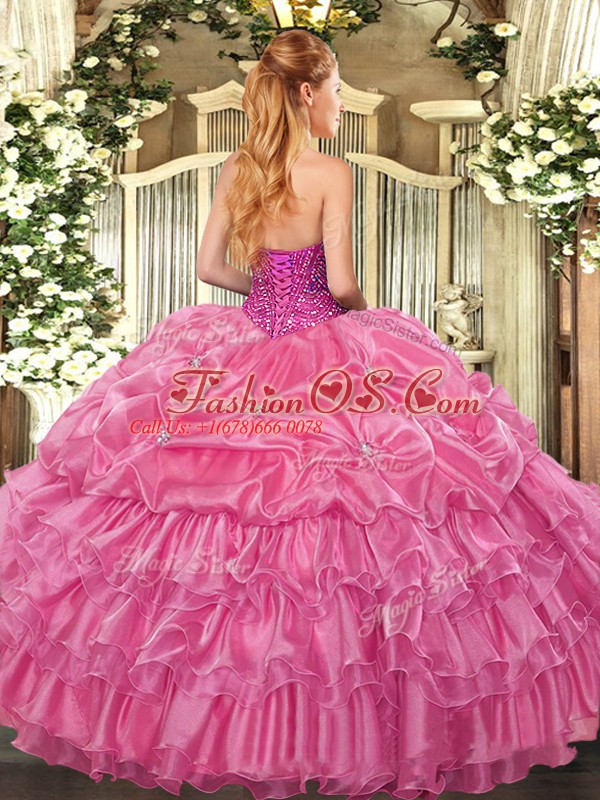 Ideal Organza Sweetheart Sleeveless Lace Up Beading and Ruffled Layers and Pick Ups Vestidos de Quinceanera in Rose Pink