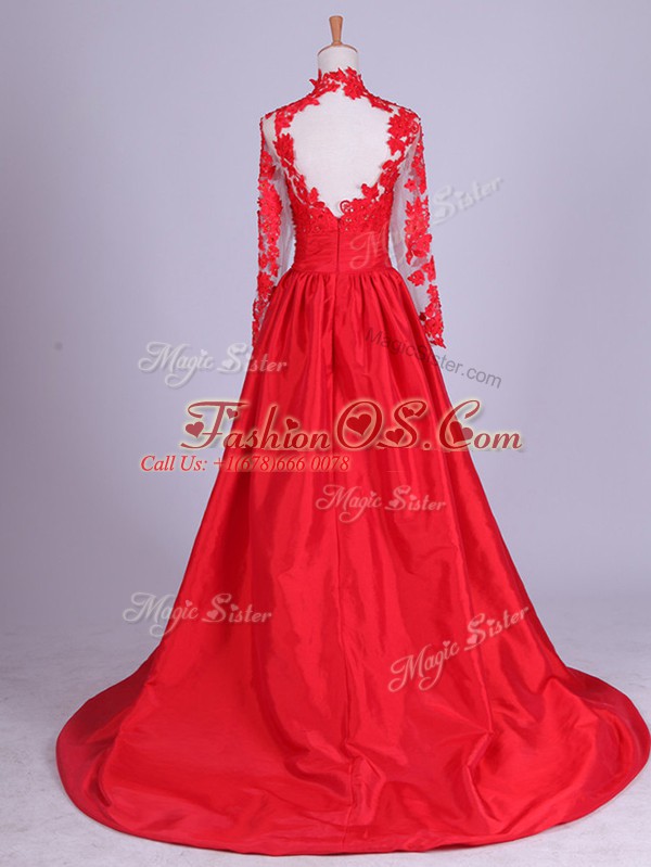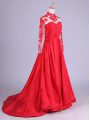Ideal Red Long Sleeves Brush Train Lace and Appliques Mother Of The Bride Dress