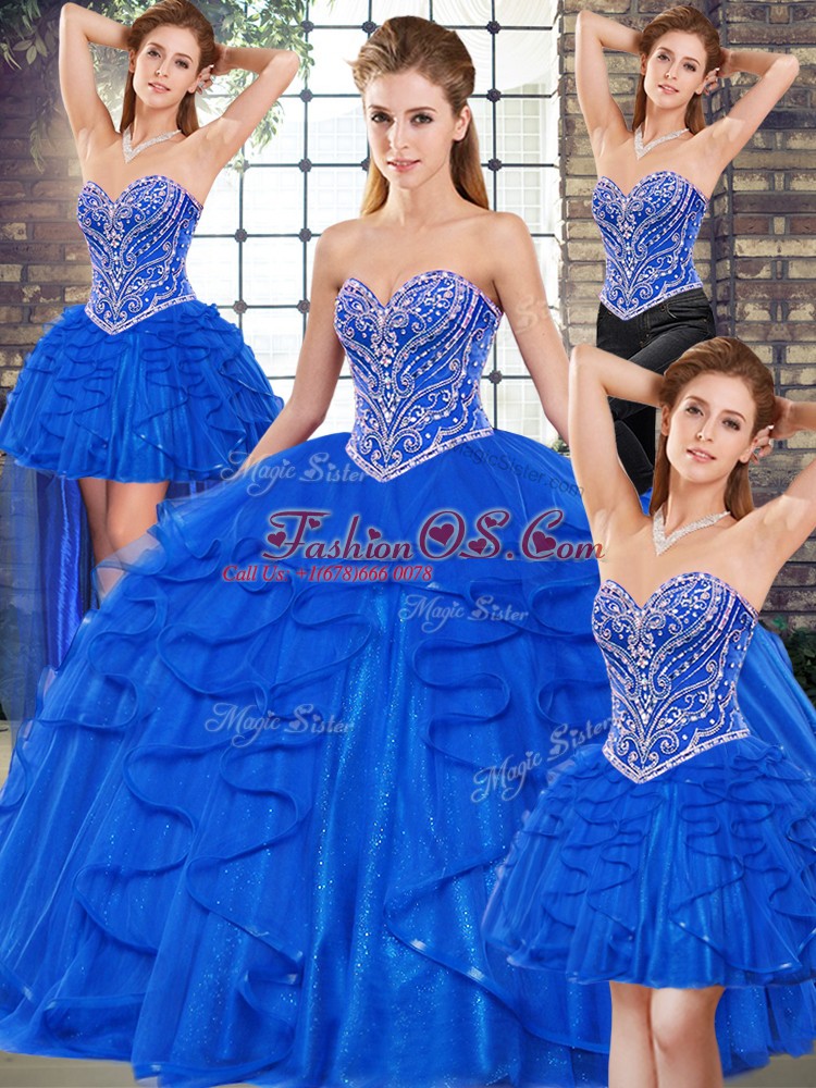 Home >  Quinceanera Dresses >  Detachable Quinceanera Skirts > Ideal Royal Blue Lace Up Ball Gown Prom Dress Beading and Ruffles Sleeveless Floor Length